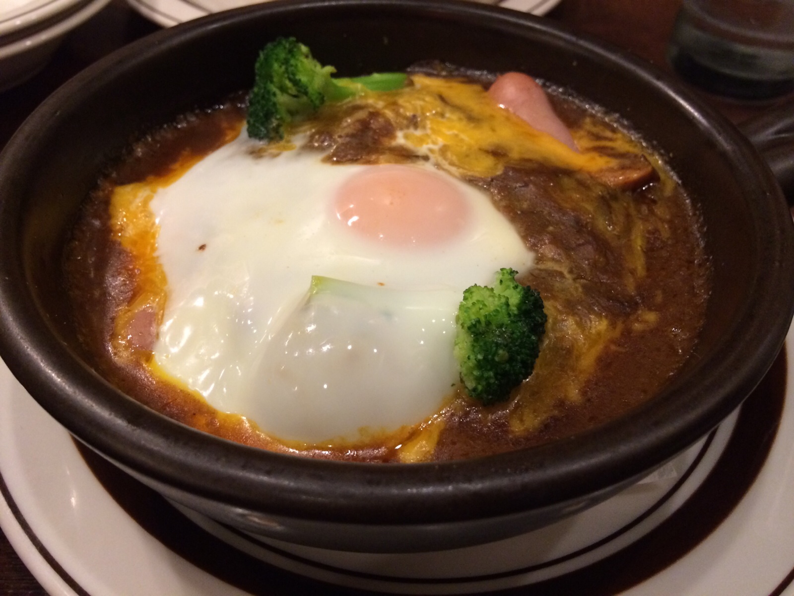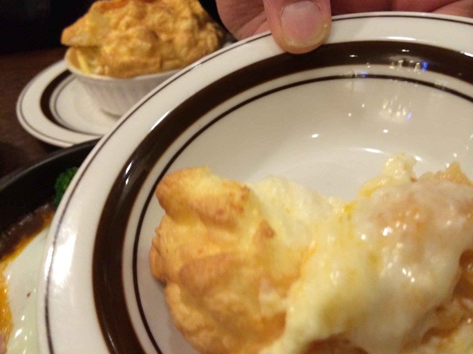 釜焼きカレーと、スフレドリア。 シェアしてどっちも食べます。(いっただきま~す 横尾)