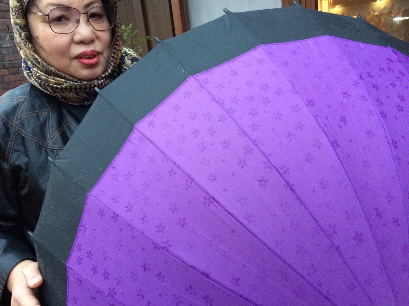 この傘は、雨に濡れると、桜が浮き出てきます。 (いっただきま~す 横尾)