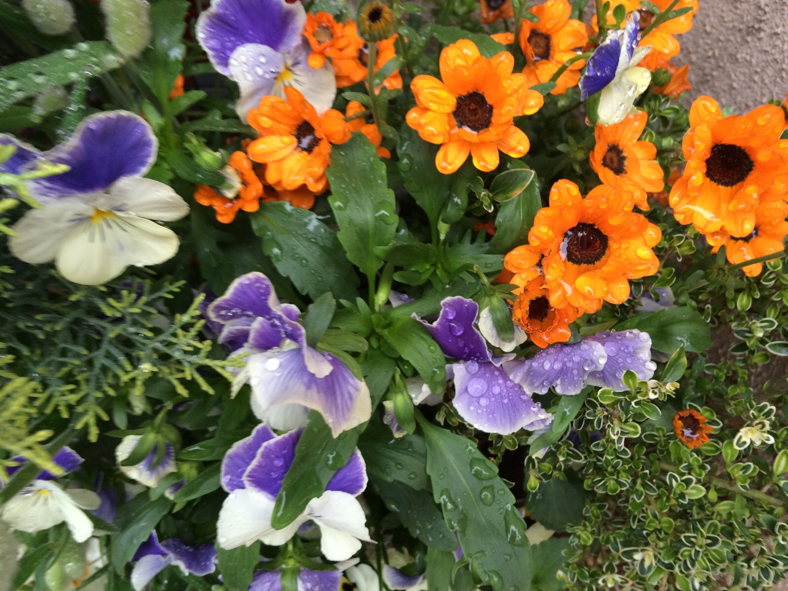 雨に濡れた花々が綺麗です。 (いっただきま~す 横尾)