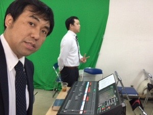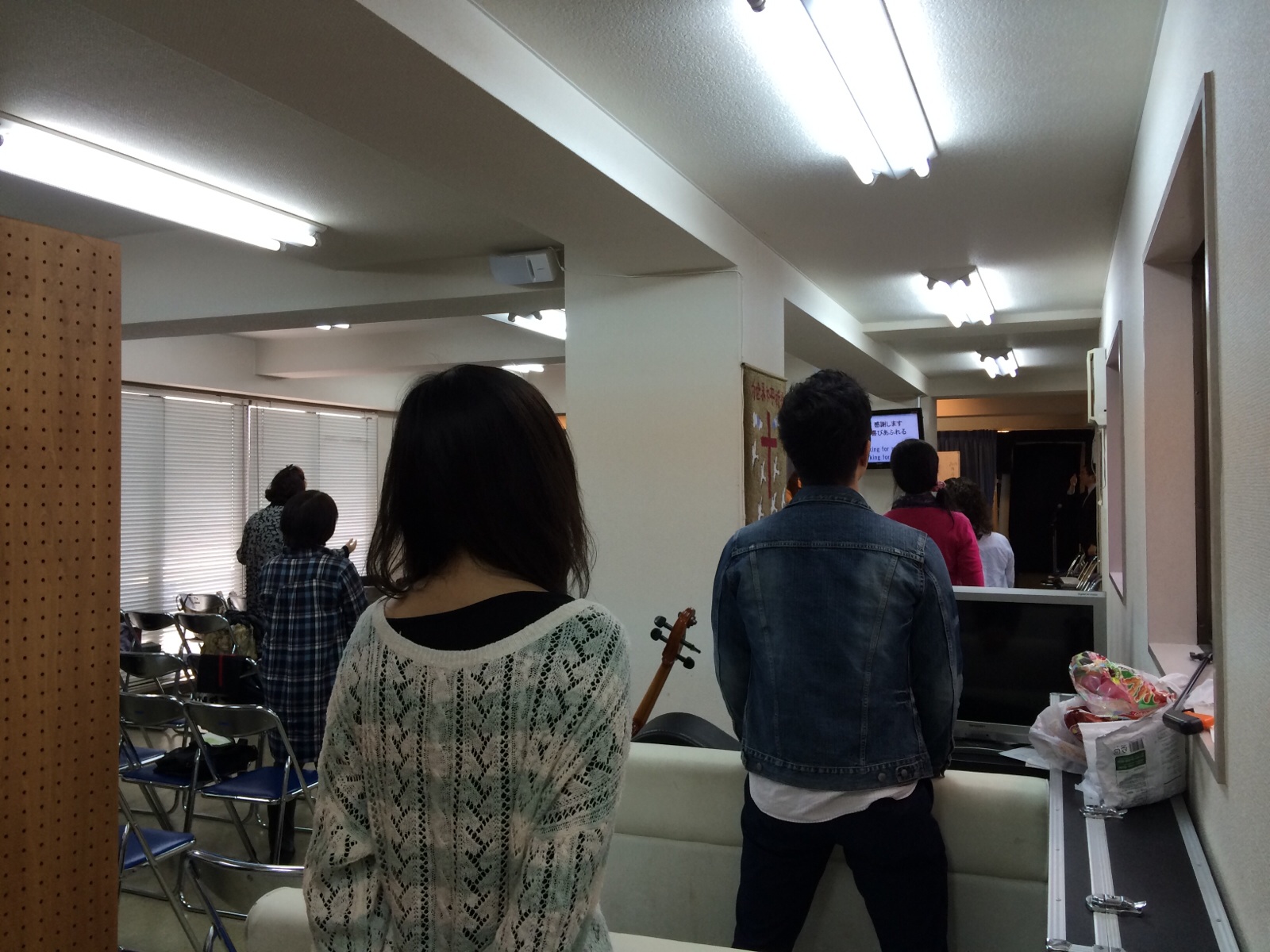 ワイワイ〜の萱野さん、後ろ髪しか見えませんが…、ジャカジャカブログをあげていらっしゃいます! (いっただきま〜す。小代)
