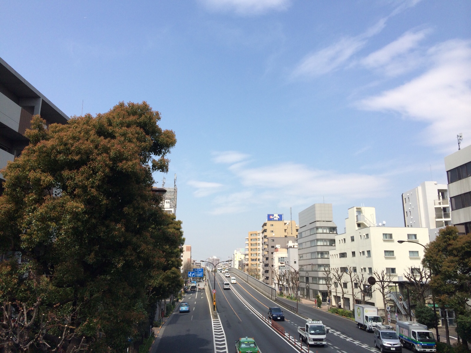 歩道橋の電灯がついてました。はて(・・?) 歩道橋の上、花は見えないですが、気持ちい〜。 (いっただきま~す 横尾)