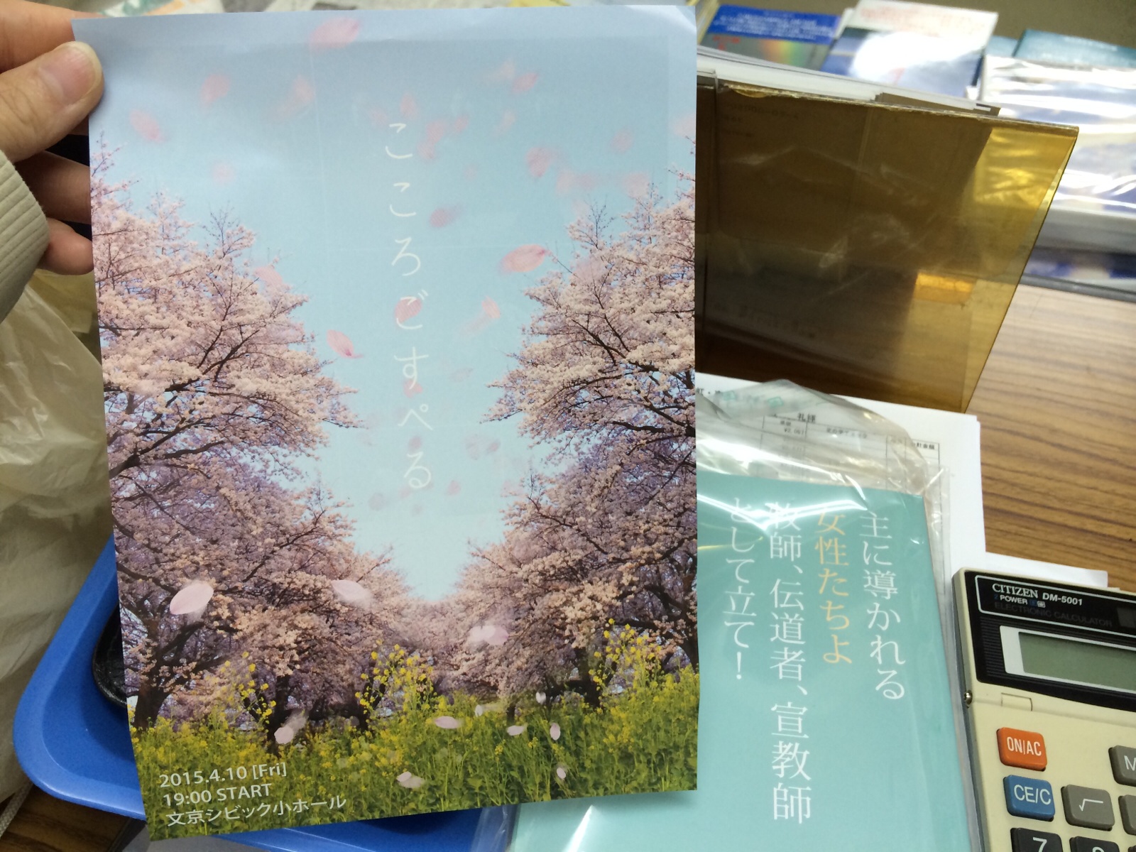 昨夜のカリスマ聖会で、「こころごすぺる」のチケットも売れました。 (いっただきま~す 横尾)