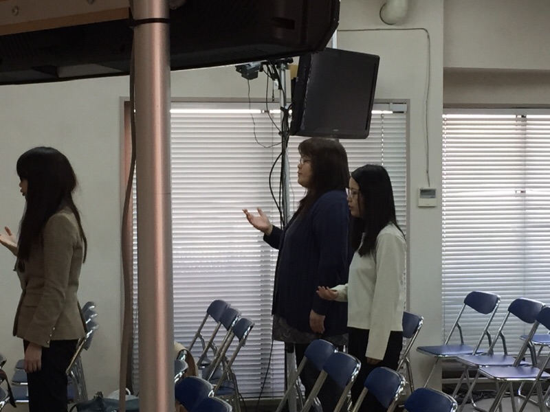 直美さんによるメッセージを皆で聞いています。 『ゴスペルのご馳走いっただきま~す 横尾』