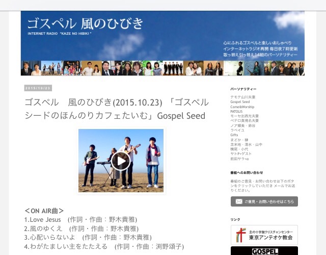 今さらですが、今日のラジオは、Gospel Seedのほんのりかふぇたいむです。 ゲストに話題の野木さんを迎えてお送りしています。 野木さんのプロフィールや京都弁の寸劇ありです。 ぜひお聞きください! ほんのりかふぇたいむ ヨセフ