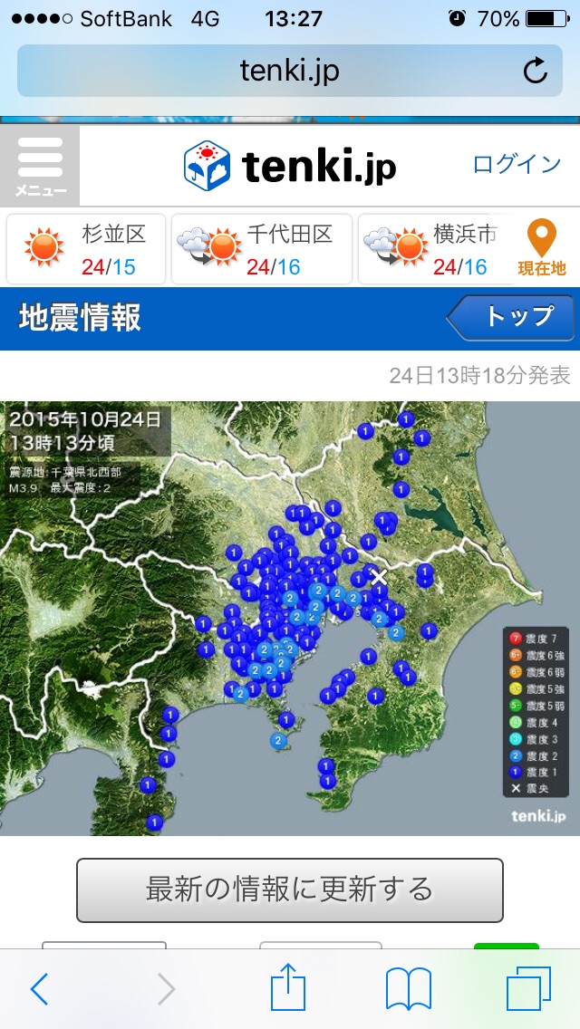 先ほどの地震は千葉が地震のようです。 夫婦でドタバタ