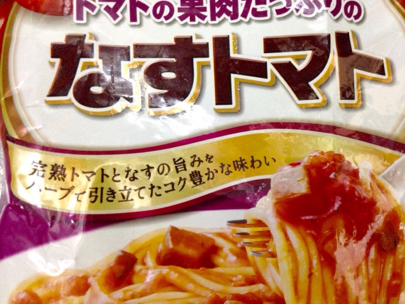 風邪気味なので、レトルトのなすのミートソースにニンニクを刻んで食べます(^^)「ゴスペルのご馳走、いただきま〜す」小代