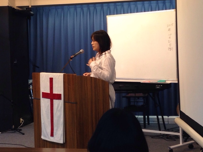 吉田さんが、お祈りのグループを発表しています! 「ゴスペルのご馳走、いただきま〜す」小代