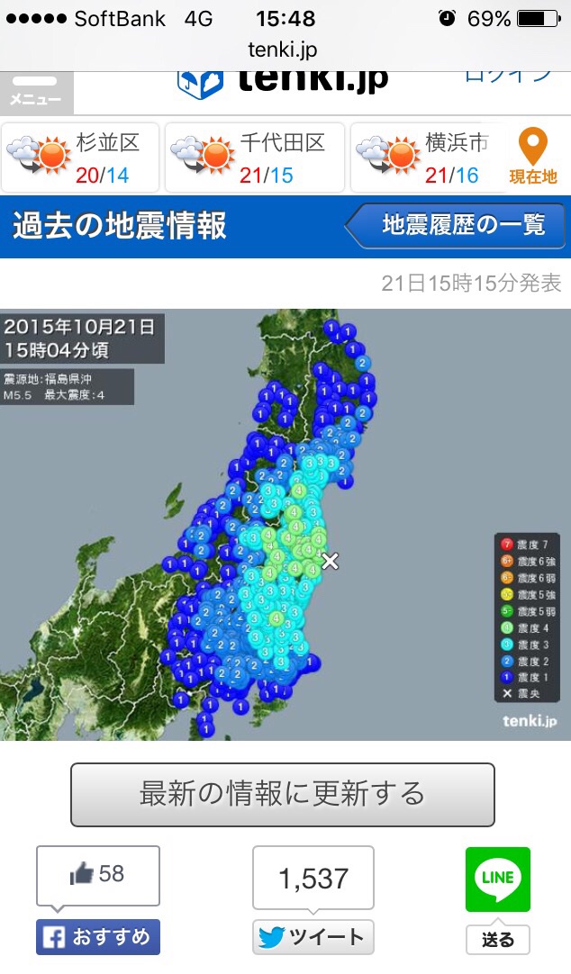 福島が震源だったみたいですね。 夫婦でドタバタ