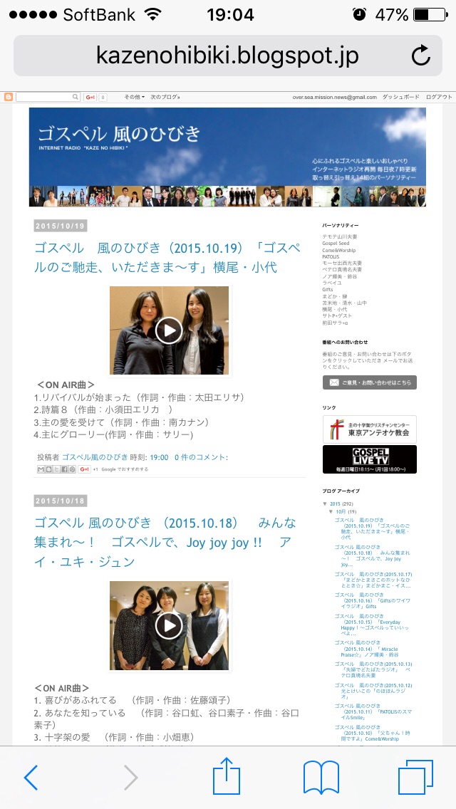 昨日19日(月)オンエアの私たちのラジオ、小代さんのいやしの証しが聞けますよ〜。 よろしかったらお聞きくださいませ。 「ゴスペルのご馳走、いただきま〜す」横尾
