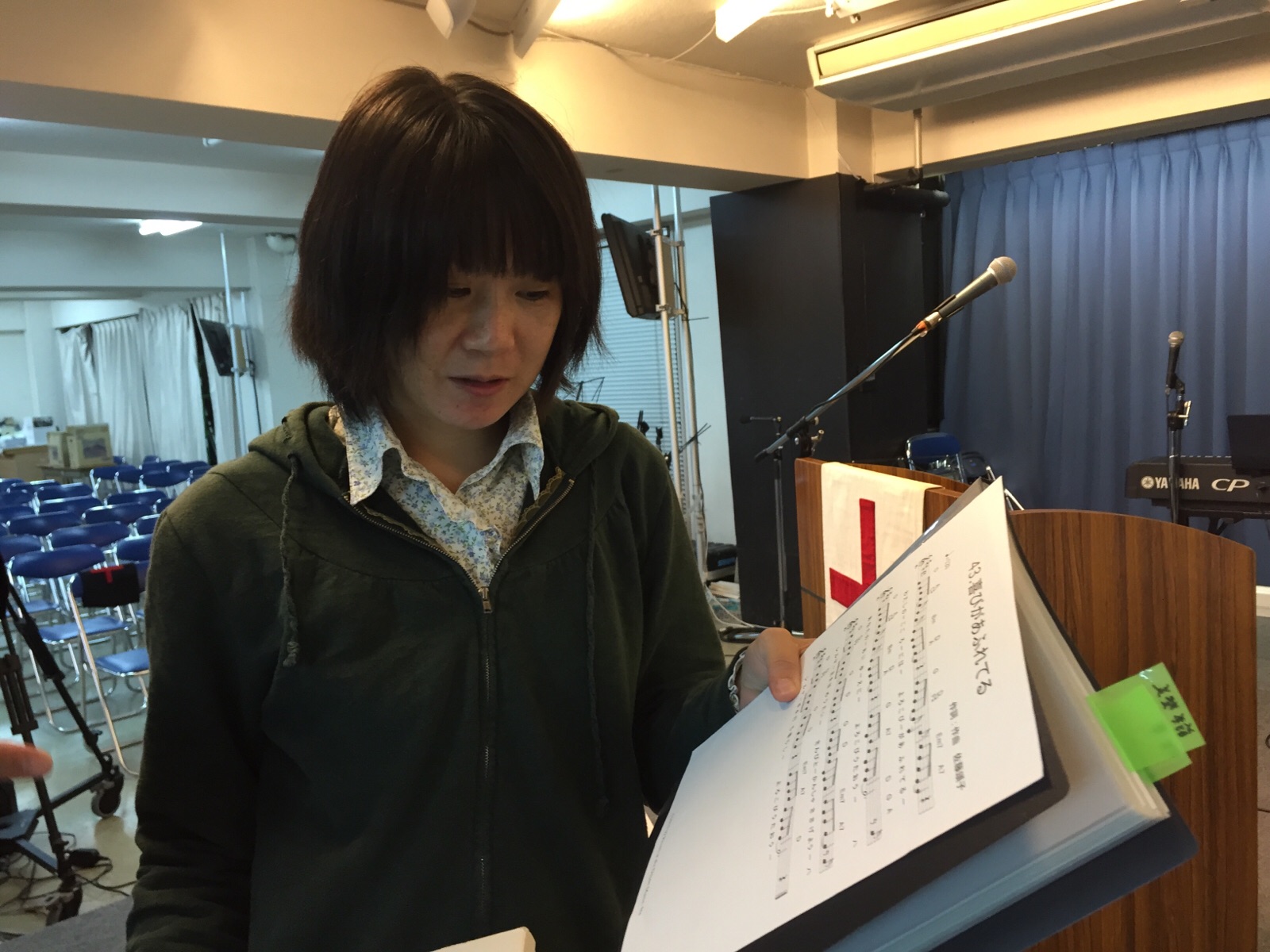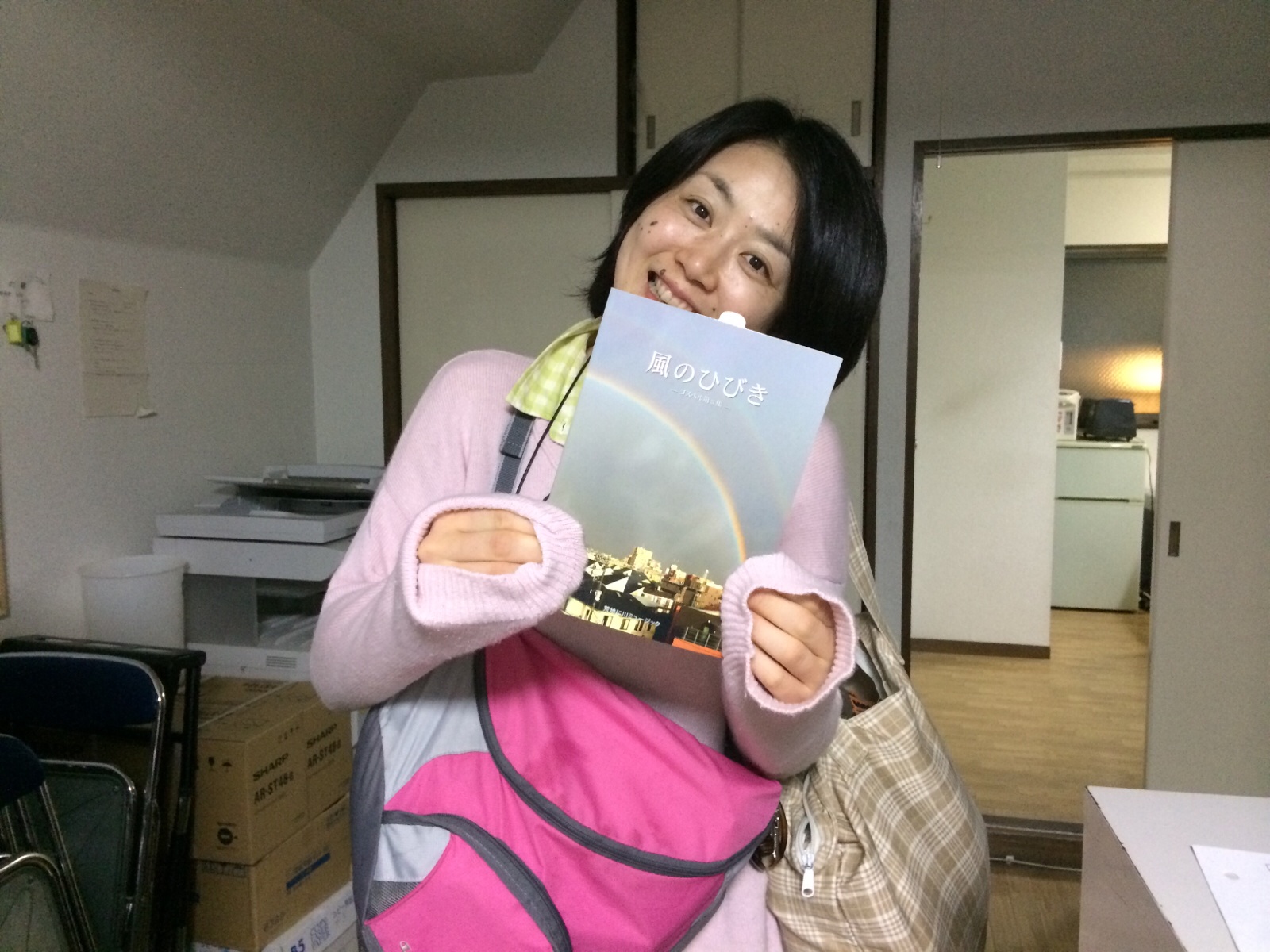 教会事務所では、ラジオのミーティングで盛り上がってます。 ジュンさんとユキさんが作った川柳で笑いが。
