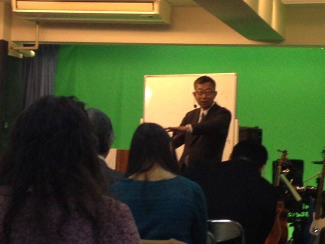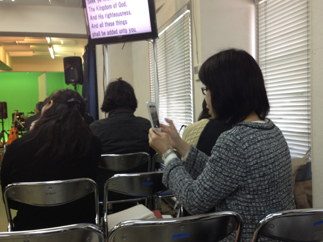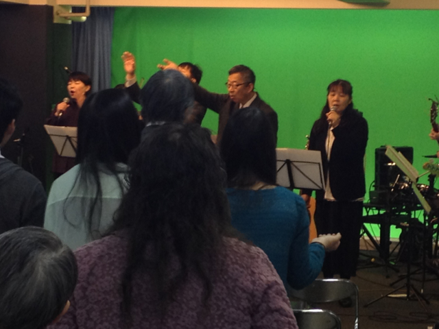 教会の収入の10分の1を教会外の働きのために、毎月捧げます。 そのお祈りを全員着席して祈ります。これはお祈り前の一枚。