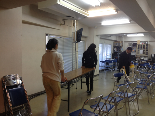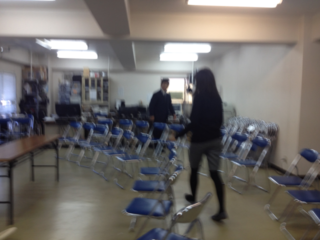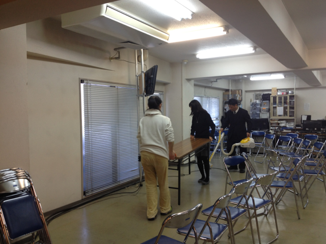 毎日礼拝終了後、スタッフの益川さん、今井さんが、聖書神学講座の会場を素早くセッティングしました。単純な作業に見えて、こだわりもあり、笑いが絶えず、楽しくできました。