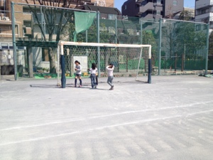 今日のCSは、春の校庭に、でました。キーパーは、男の子二人、攻めは、女の子たち。おおの