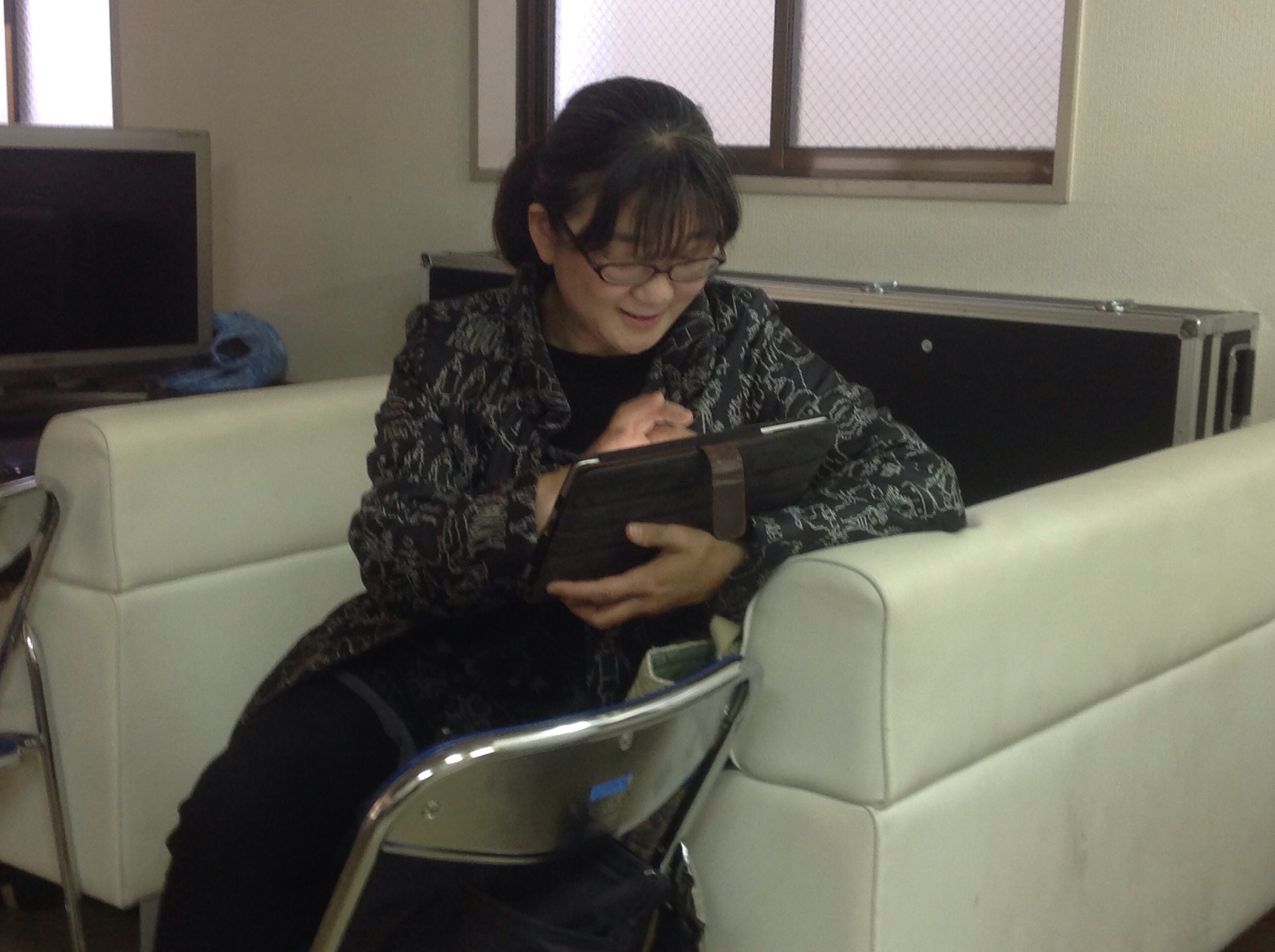 礼拝が終わり、片付けています。 日本キリスト教史上下を買ってね。まどか