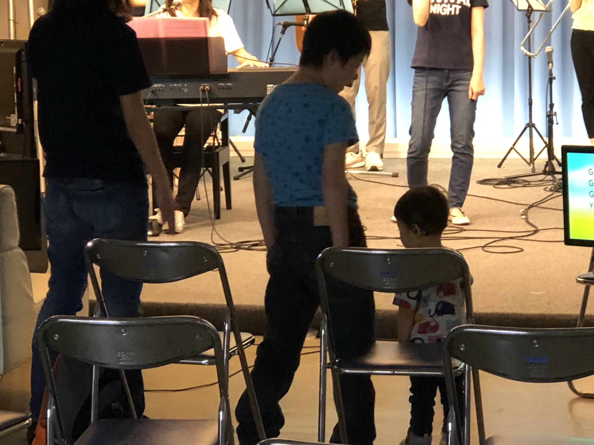 ゆうとくんと一番前で元気に賛美。 テモテ