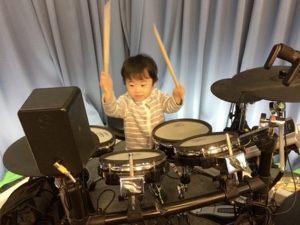 ルーク、ドラムに登り始めました!