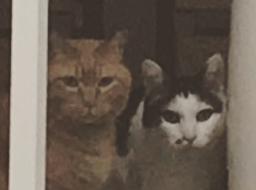 おはよう。勝手に覗いてごめんね。 左の子は、ペットフードの宣伝に、昔出ていた、モーリスって猫ににている、ぉ