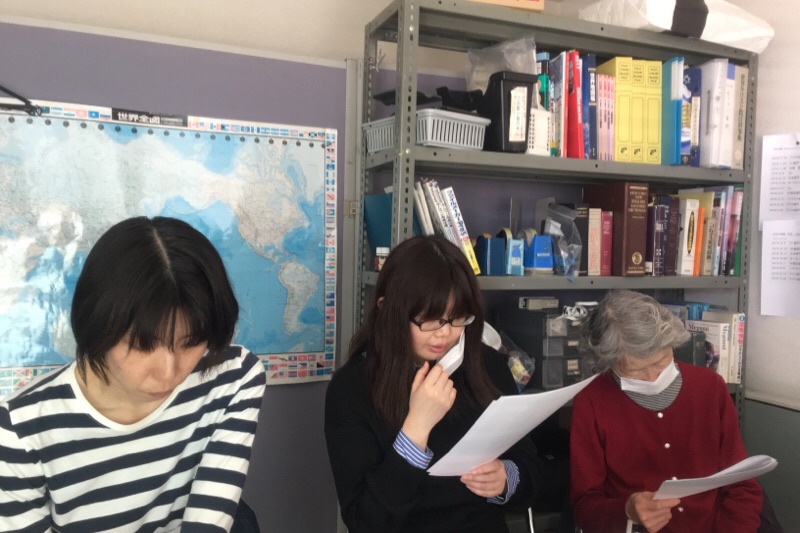 りょう子さん、 資料を見てます (p_-)oji