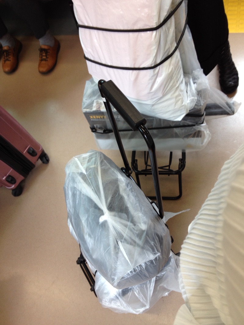 中央線で新宿へ。 雨が降りそうなので、機材が濡れないように、完全防備です。 Joint of joy