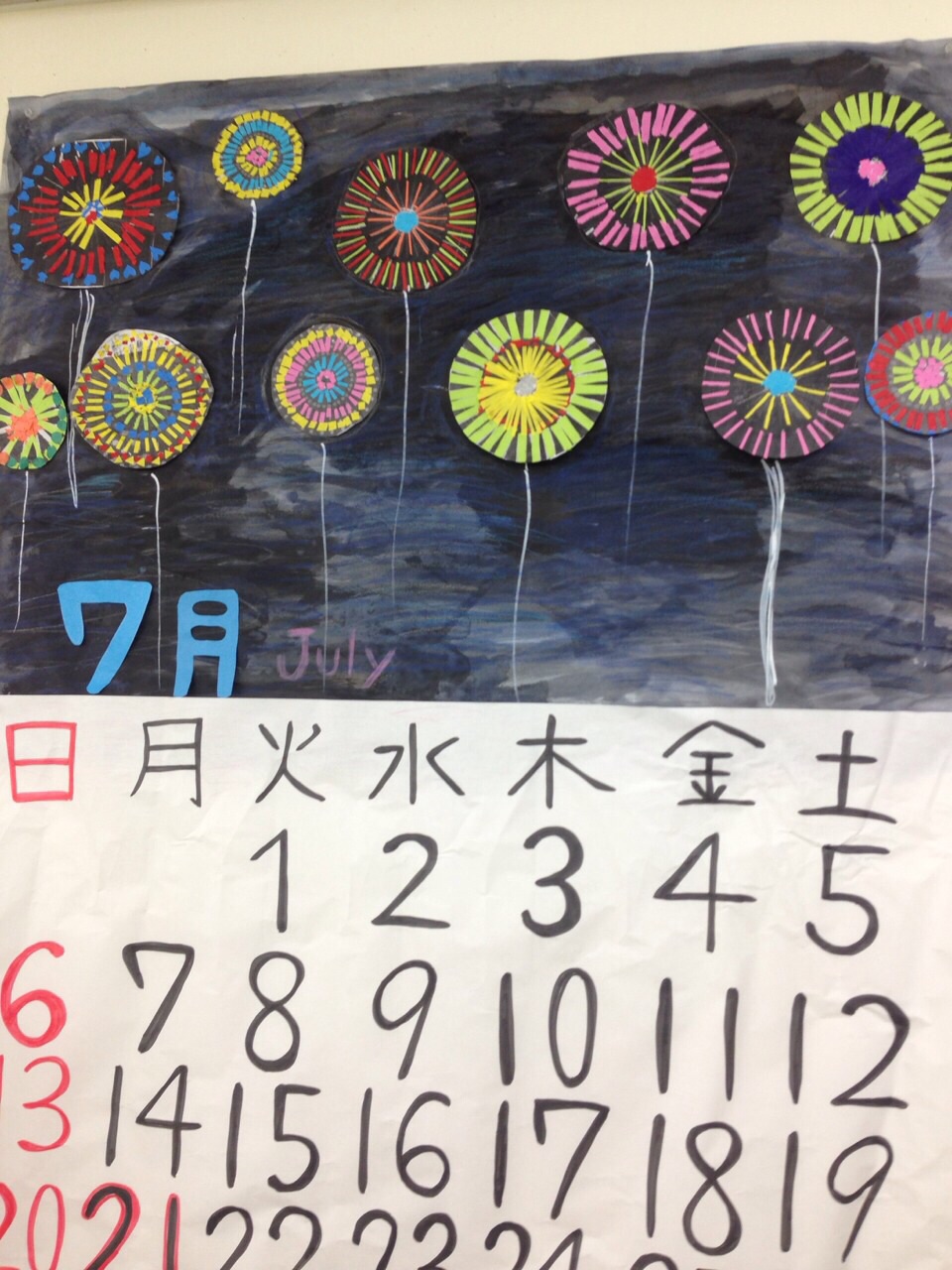 7月のカレンダー☺︎ 利用者さんと貼り絵をして 作りました☺︎ エルサレム mami