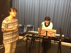 会堂に到着! ウラノスが賛美大会に向けて練習中です。