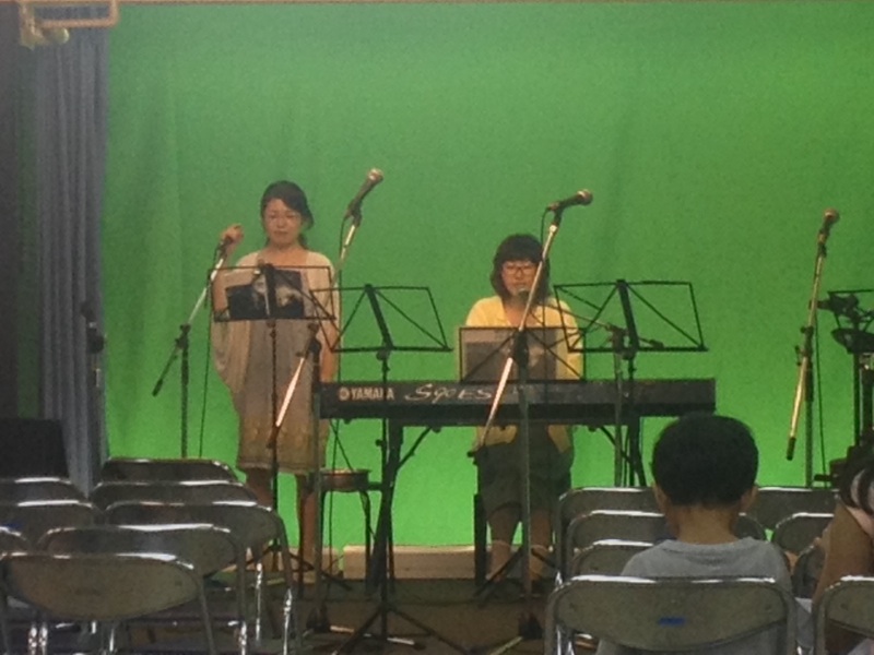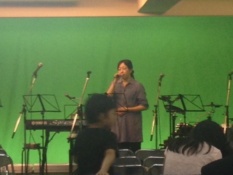 今日はオケで、輝く光の中を。をソロで賛美しています。