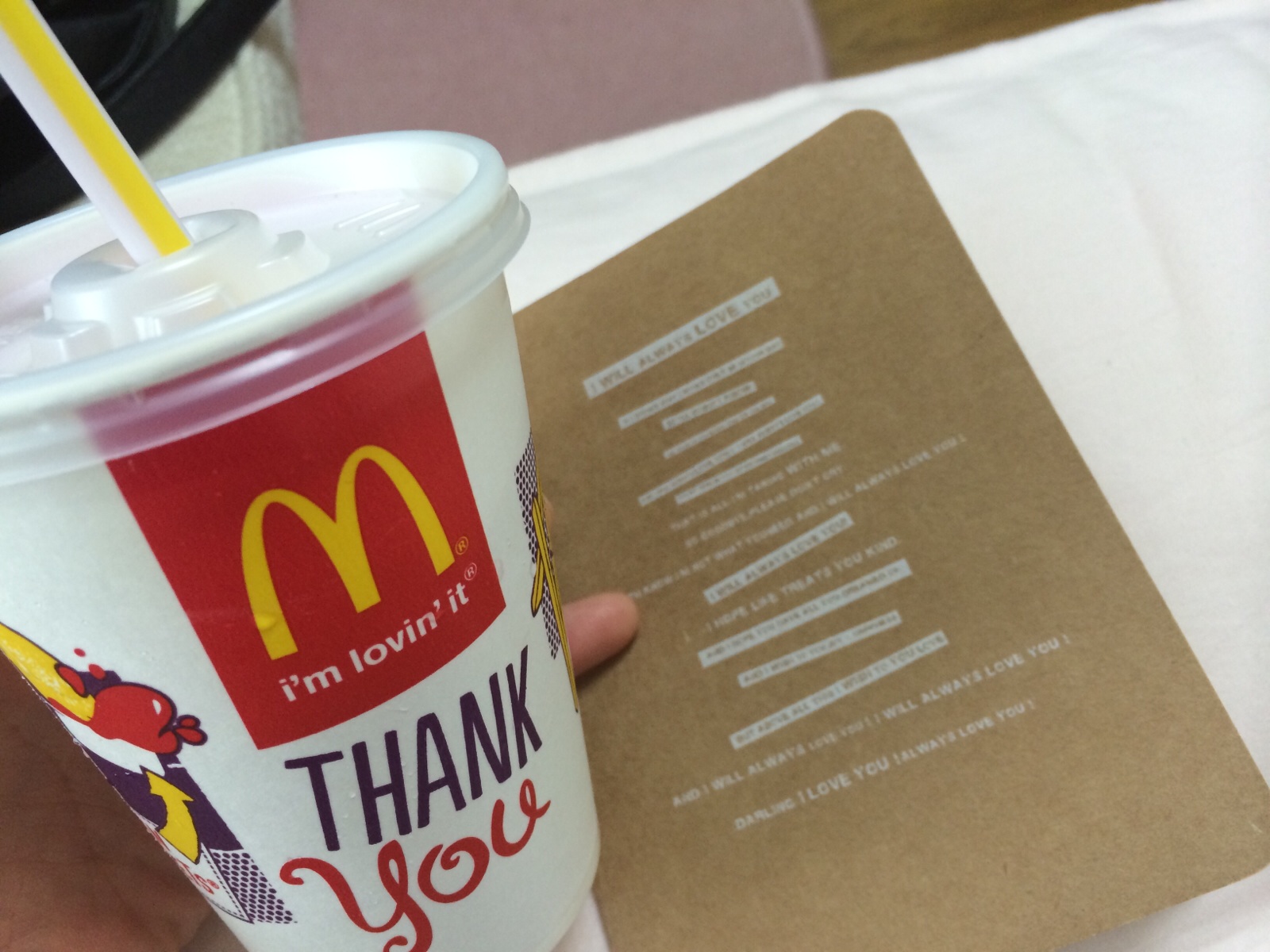 マックの紫芋のシェイク飲んで、詩をかいてます。一冊目が終わりました♬(手のひらサイズのノートですが…)一日10曲!続けられますよーに☆ 大和教会 izumi