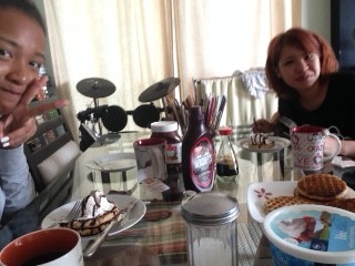 デンバーの朝です。今日は、ワッフルからスタートです。焦げてしまいましたが・・・・