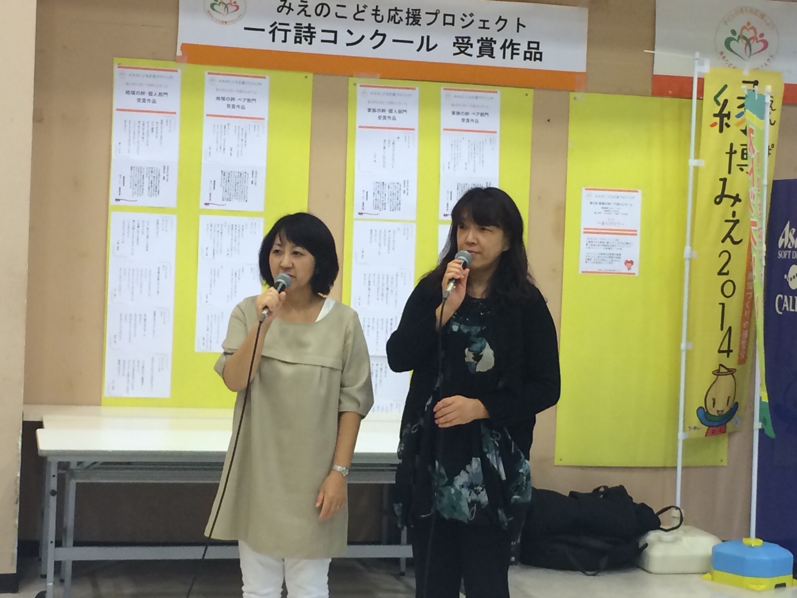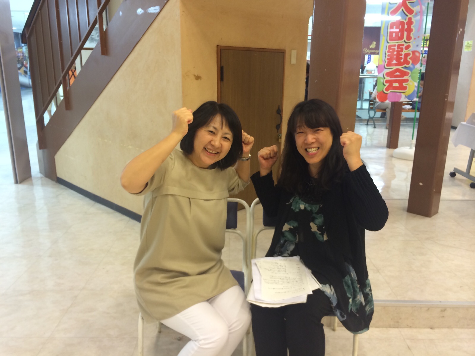 司会進行のお二人、入念に打ちあわせ中〜。準備はOK?「ばっちり〜!」 四日市シオン