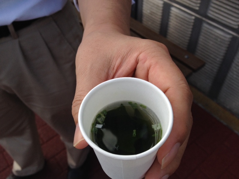 明日は富士市でコンサート。その前、今日は東京へ向かっています。途中のSAで試食のスープに舌鼓。 富士の賛美隊
