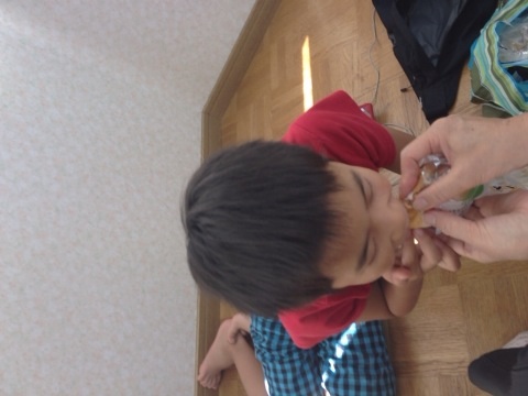 第一礼拝(子どもの礼拝)が終わって、パンをほおばっています(o^^o)