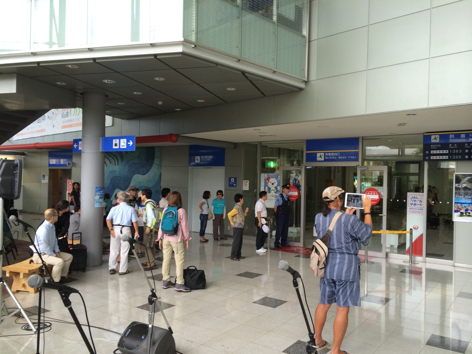今日のコンサートは空港の一階到着ロビー前で行います。今丁度、東京からの便が到着しました。 スプレンダーjohn