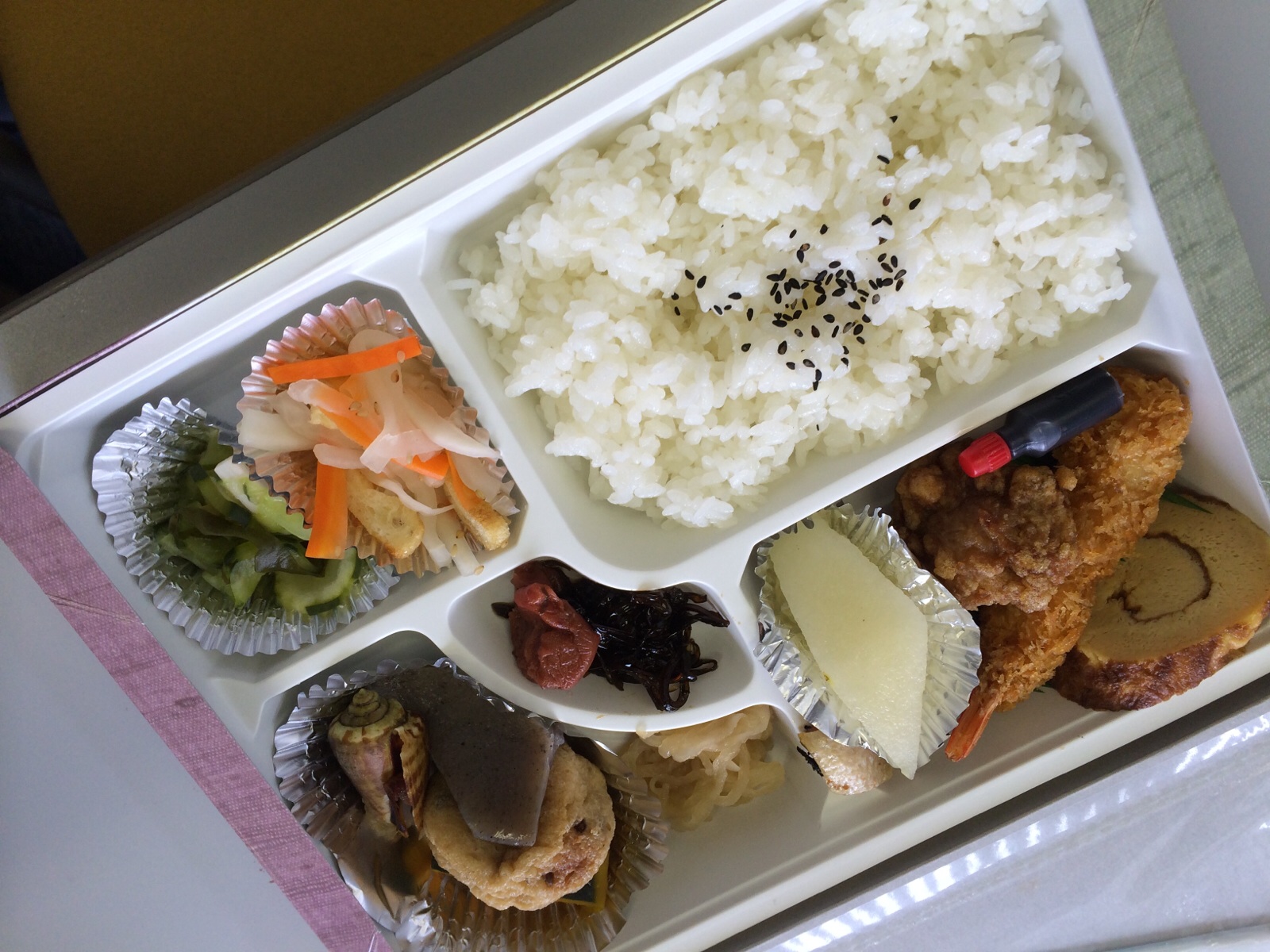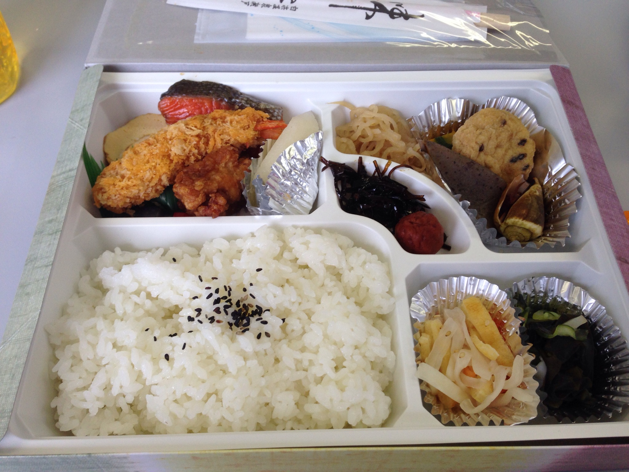 空港の方で用意して下さったお弁当です。^_−☆いただきます。 スプレンダーjohn