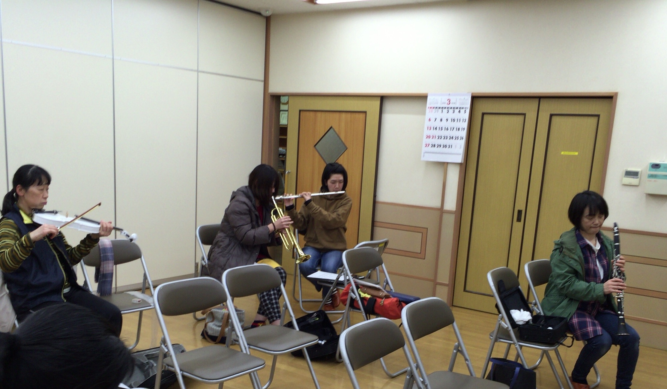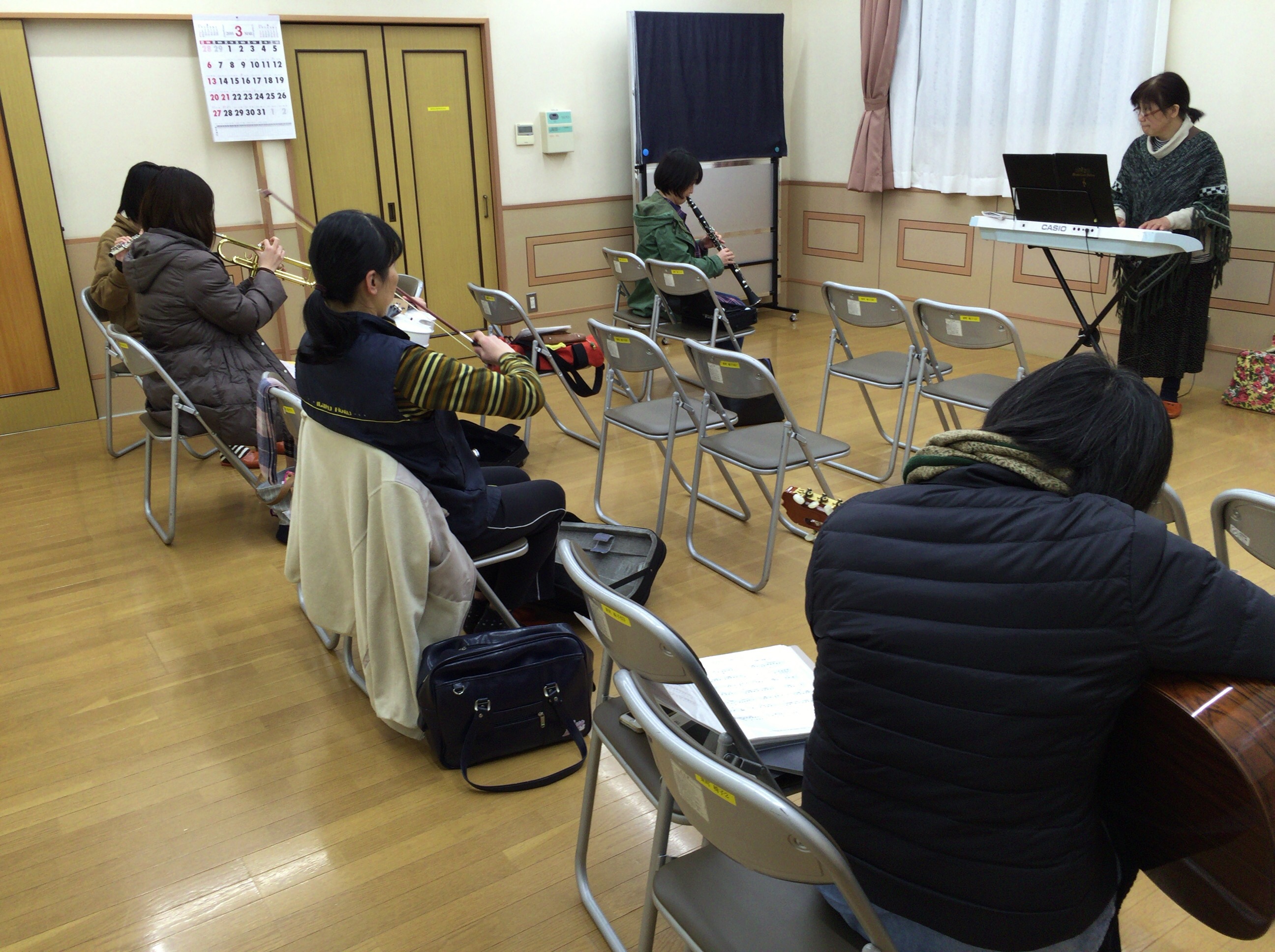 楽器も増えて、初心者ばかりのオーケストラの練習です。 皆、楽しそうです。