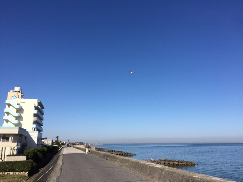 お天気のいいので近くの海へ行ってきました〜 以前 喜びが訪問コンサートを行った介護施設がみえまーす 四日市 なかしま