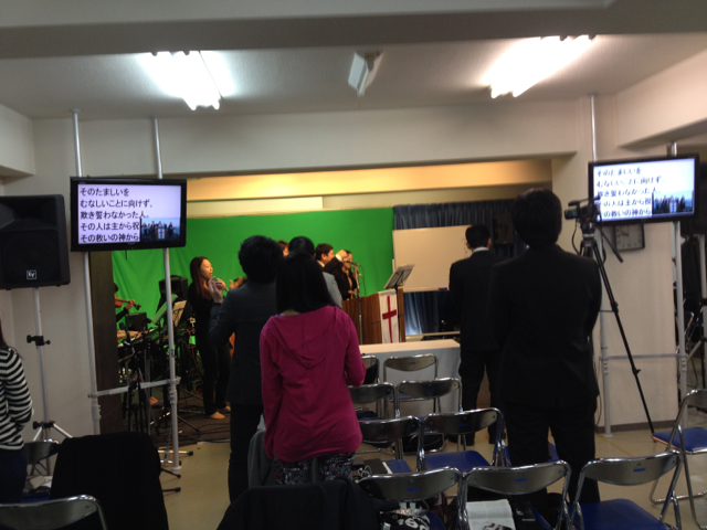 第1礼拝始まりました。 賛美を導くのは、ダニエル森牧師チームです。
