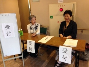 受付の方々です。西田さんは顔を隠した手を下ろした後で撮るのがコツですね。