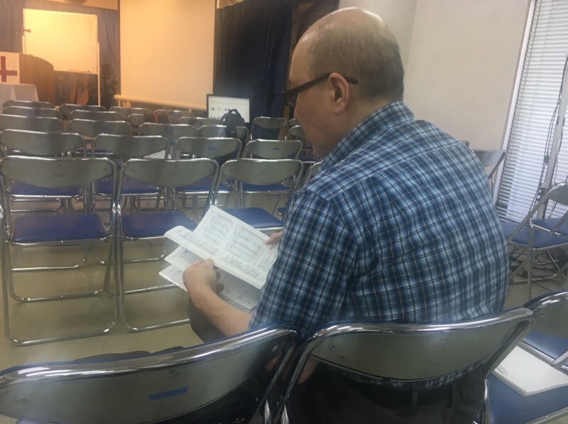 金曜日礼拝前です! 今日は森田さん、いらしてます! peter