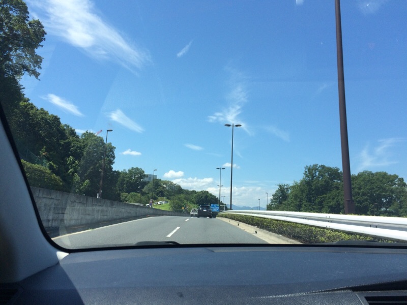 光が眩しい〜! でも気持ちイイです。 ドライブ日和っていうところですか〜?
