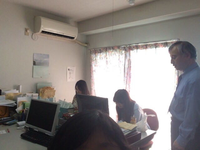 インターナショナル礼拝を聞きながら…作業しています! 教会事務所