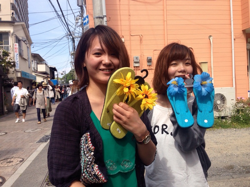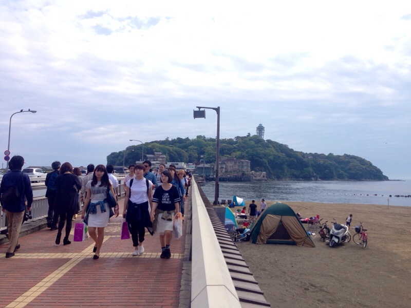 江ノ島に向かって橋を渡り中、目指すはタワーと、岩場(笑)