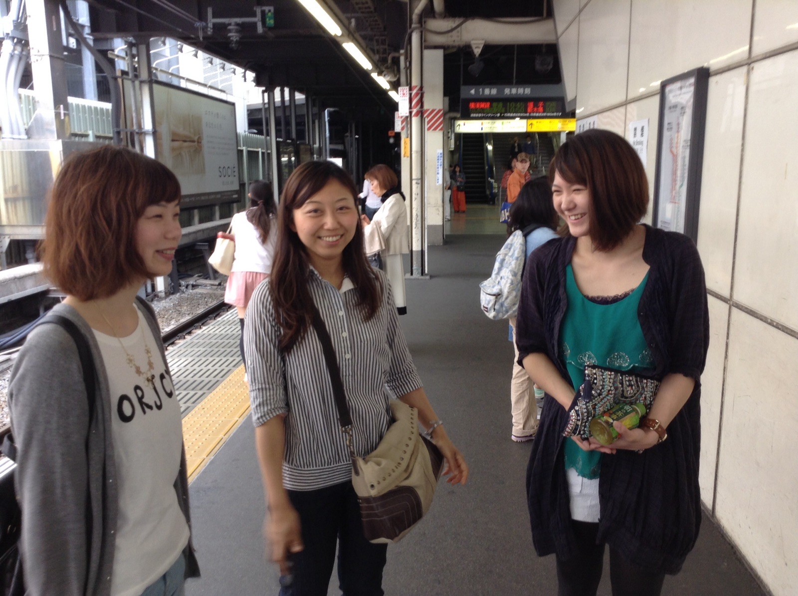 今藤沢に移動中、だいぶお待たせしましたが、46分藤沢着です!藤沢組、しばしお待ちを!男性陣寝ちゃった☆彡