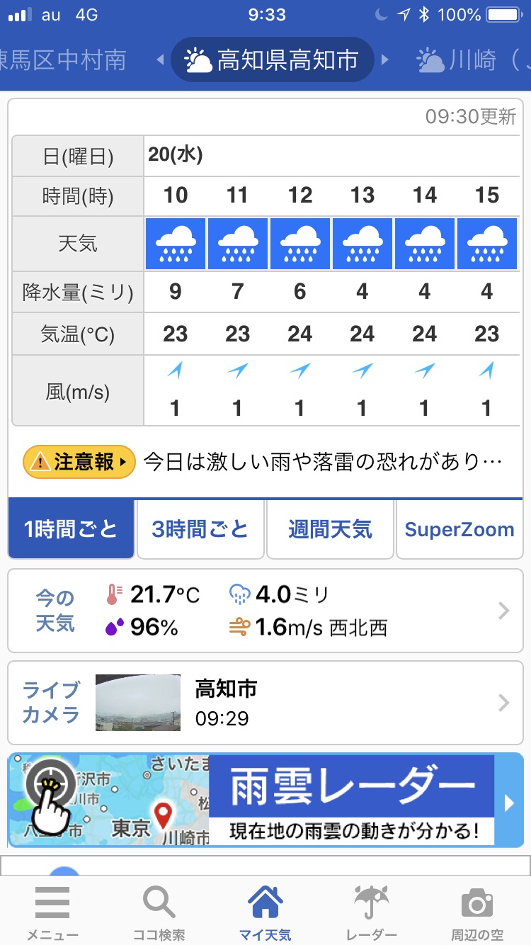 今日の高知と次の働きの地、松山市のウェザーニュース。