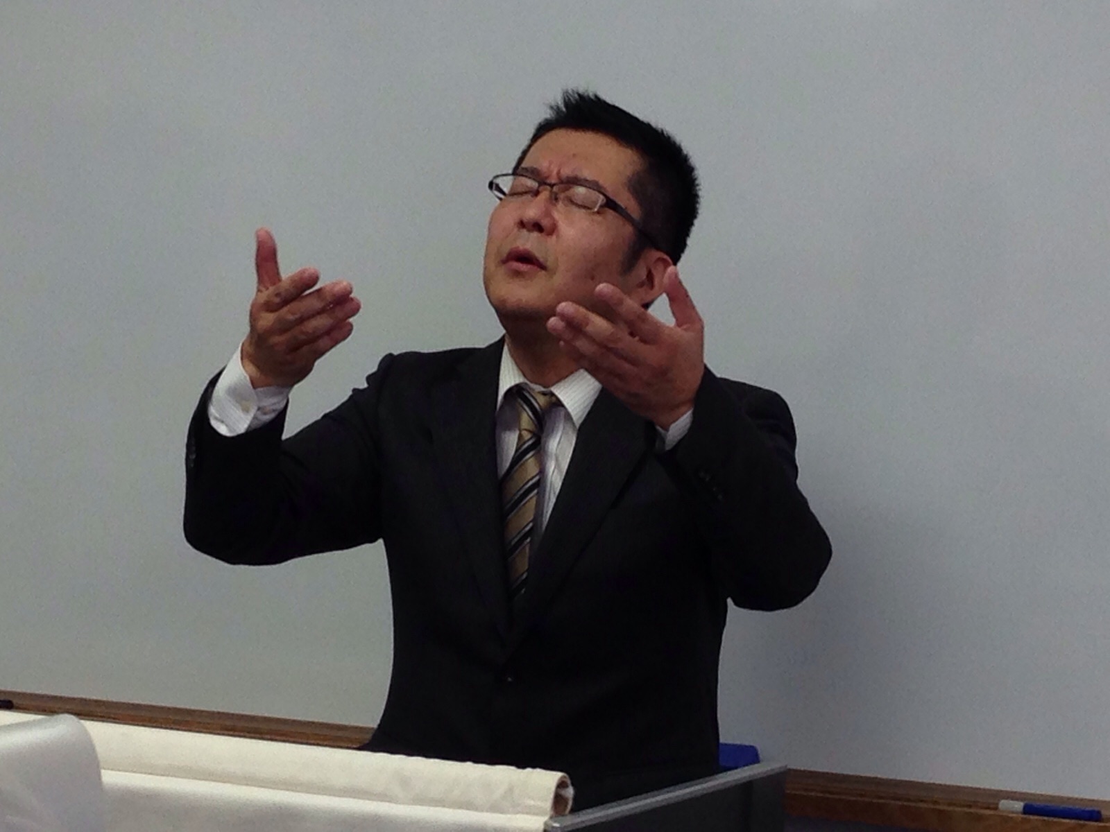前半の会衆賛美を導く掛本さん。 sugisawa