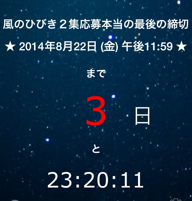 昔こんなレコードがありました。いつまでも待つわ〜という歌詞が印象的でした。応募曲は締切まで待ちます。