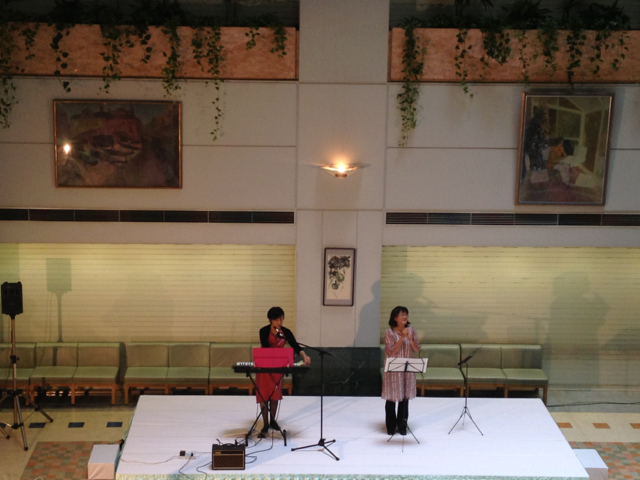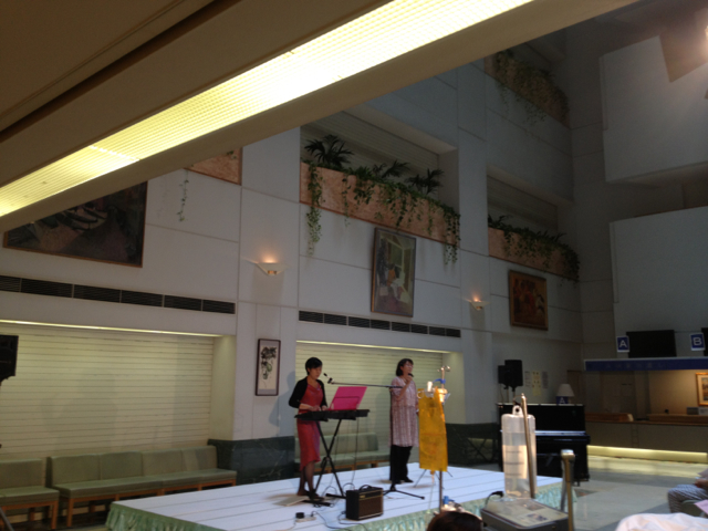 患者さん、ご家族、スタッフ合わせて約100名の方々が聞いてくださいました。 心が安らぐ歌で、優しい気持ちになれたと言っていただきました。JoyMiya