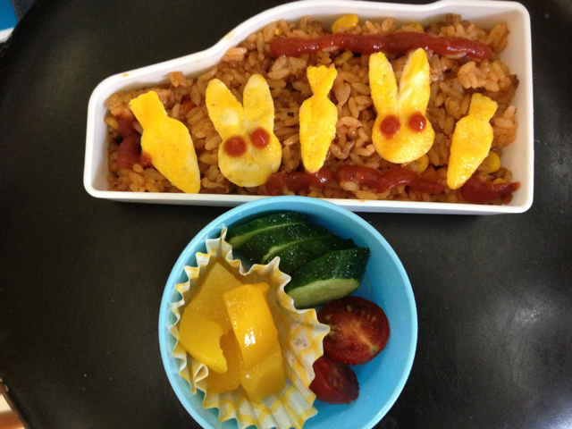 これは、三本松息子のオムライス弁当。