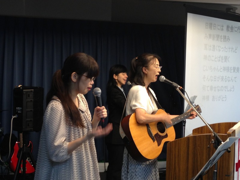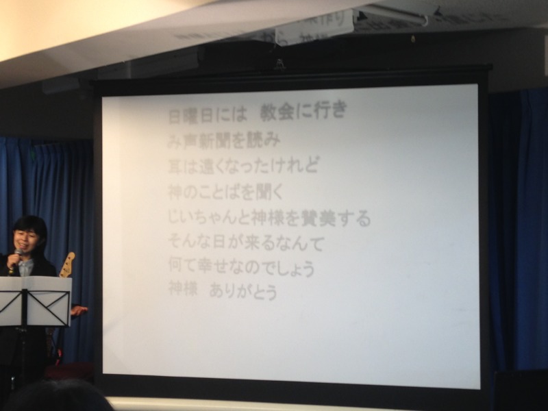 神様とじいちゃん♫が賛美されています。作詞作曲者のエルサレム菱沼伝道師がピアノを弾いています!