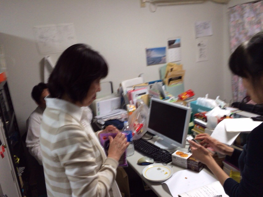 ホッとしてお菓子食べています。 白馬キャンプ委員会。