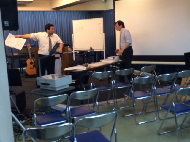 急ご飯(?)ではなく、救護班の今村牧師と清水さん。